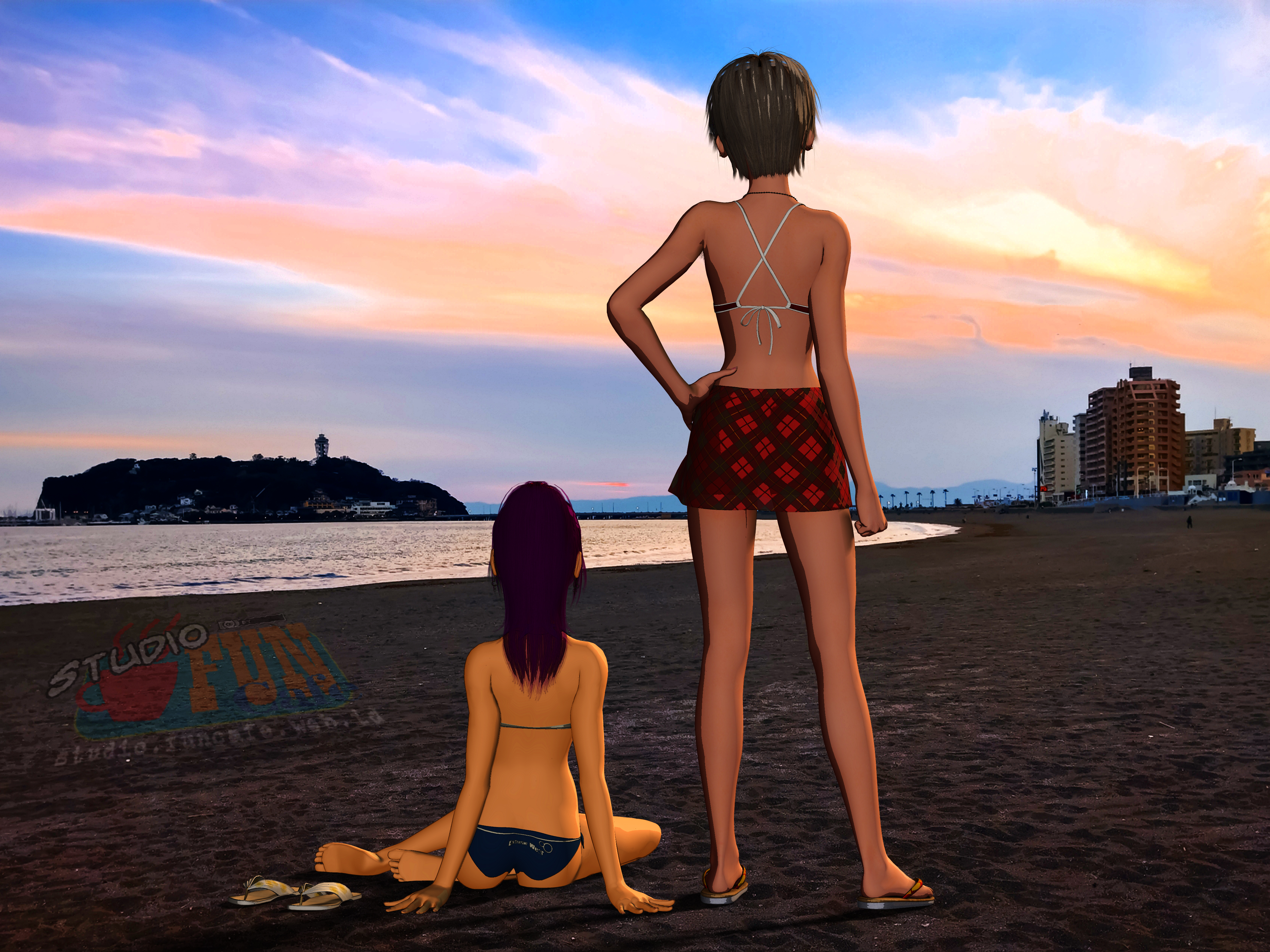 | Title: The Last Twilight of Summer Finished: September 02, 2025 Summer has reached its last day. Our girls are watching the last sunset of their summer holiday. The beach which usually crowded, now looks deserted. The seasons have changed, but the days still feel hot even though it has entered autumn. It's sad to say goodbye to the summer beach, but no worry, we will come back again next summer. |