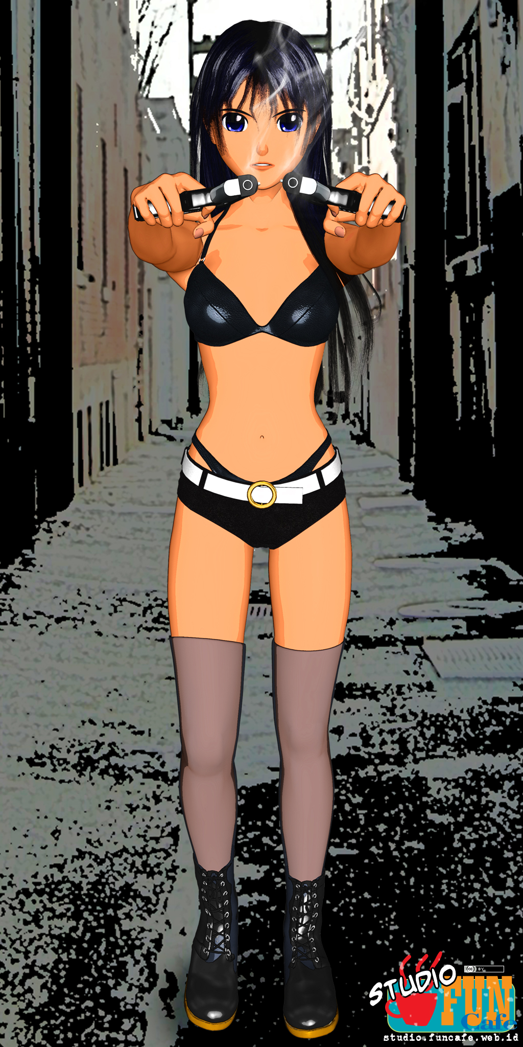 | Title: Dual Wielder Finished: May 27, 2015 Inspired from a fan art. Black haired girl with black bikini-like outfit handling dual gun has just finished you. That smoking gun probably the last thing you saw, or perhaps her sexiness :D |