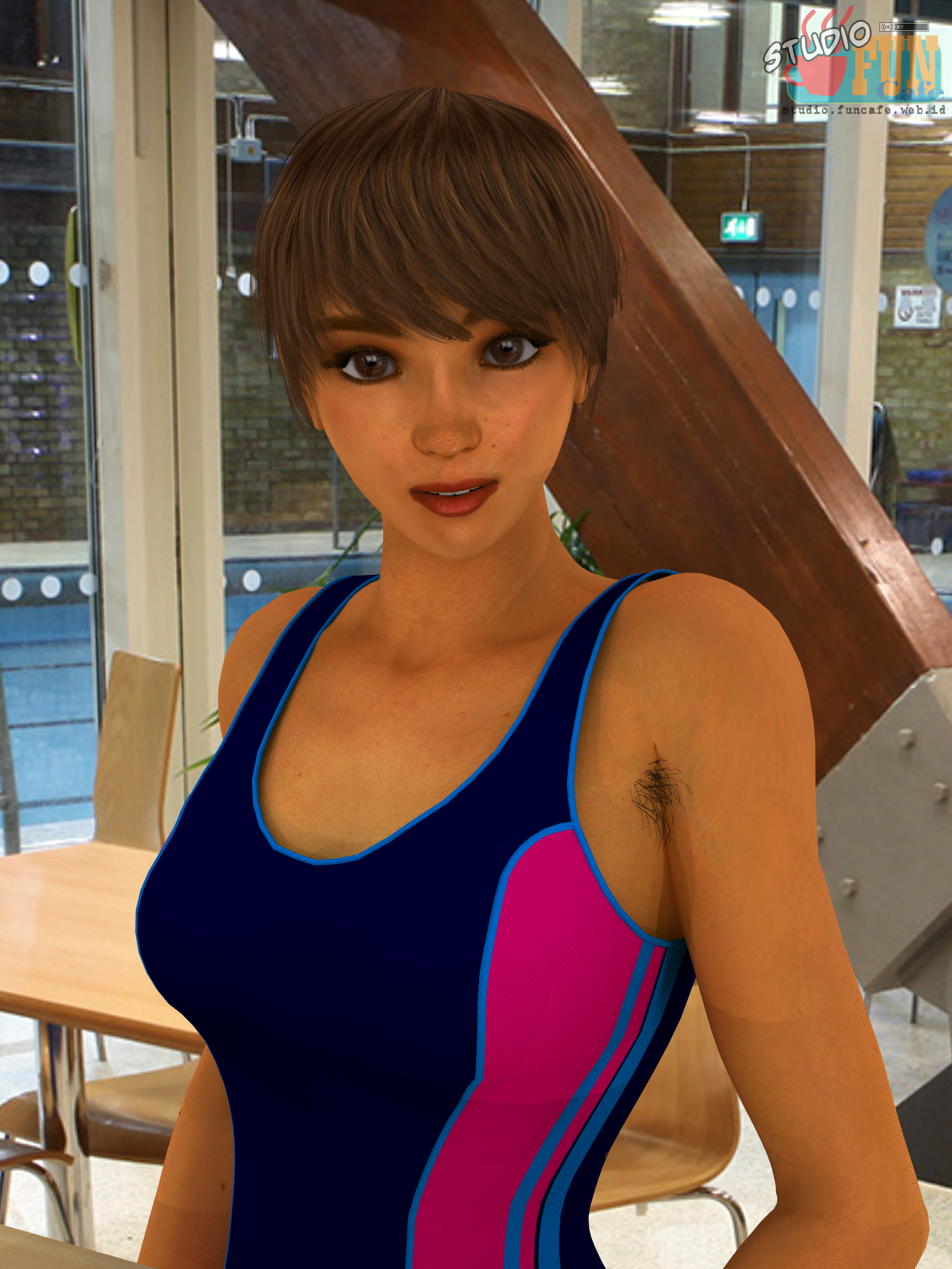 | Title: One Sweet Day Finished: April 21, 2016 Your swimming date started from the swimming pool cafe, where both of you have relax for a while. This is the good time for you to enjoy her astonishing beauty. This is the first render of Aya revision 13, the difference can be spotted easily with the previous work. Also, this is the test render of the completed cloud rendering platform. Light was HDRI and this took 4 hours to completed. |