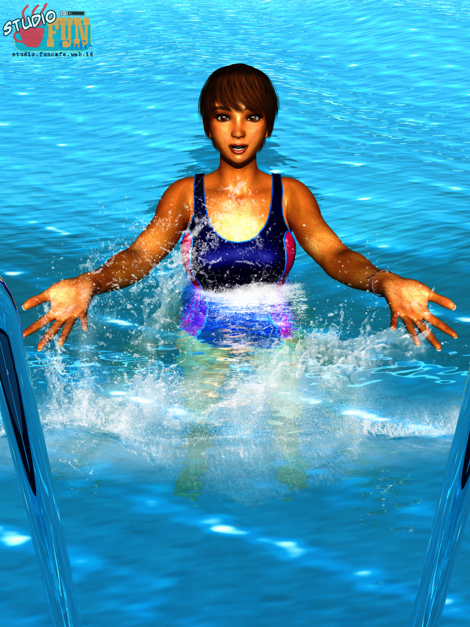 Test render for Aya's new wet texture, but it doesn't clearly visible. The splash was made on post-work, also doesn't look good either.