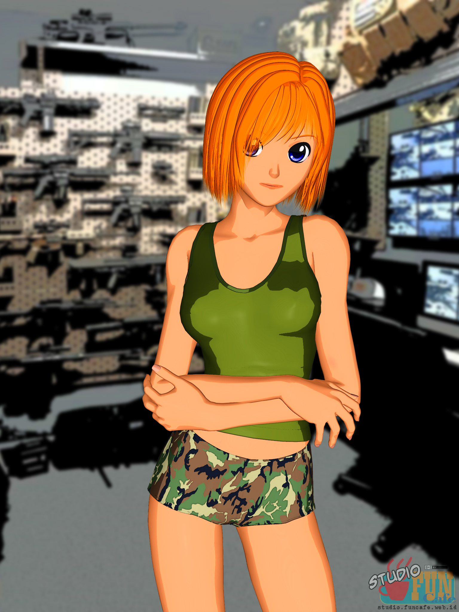 | Title: Gal @Home - Rina Finished: April 07, 2020 During COVID-19 pandemic, everyone must stay at home. What Rina looks like at home? For a military enthusiast, hot pants and tank top are her choice since she mostly spend her time shooting in her basement gunnery. This is the revised version, the original is still on Pixiv. |