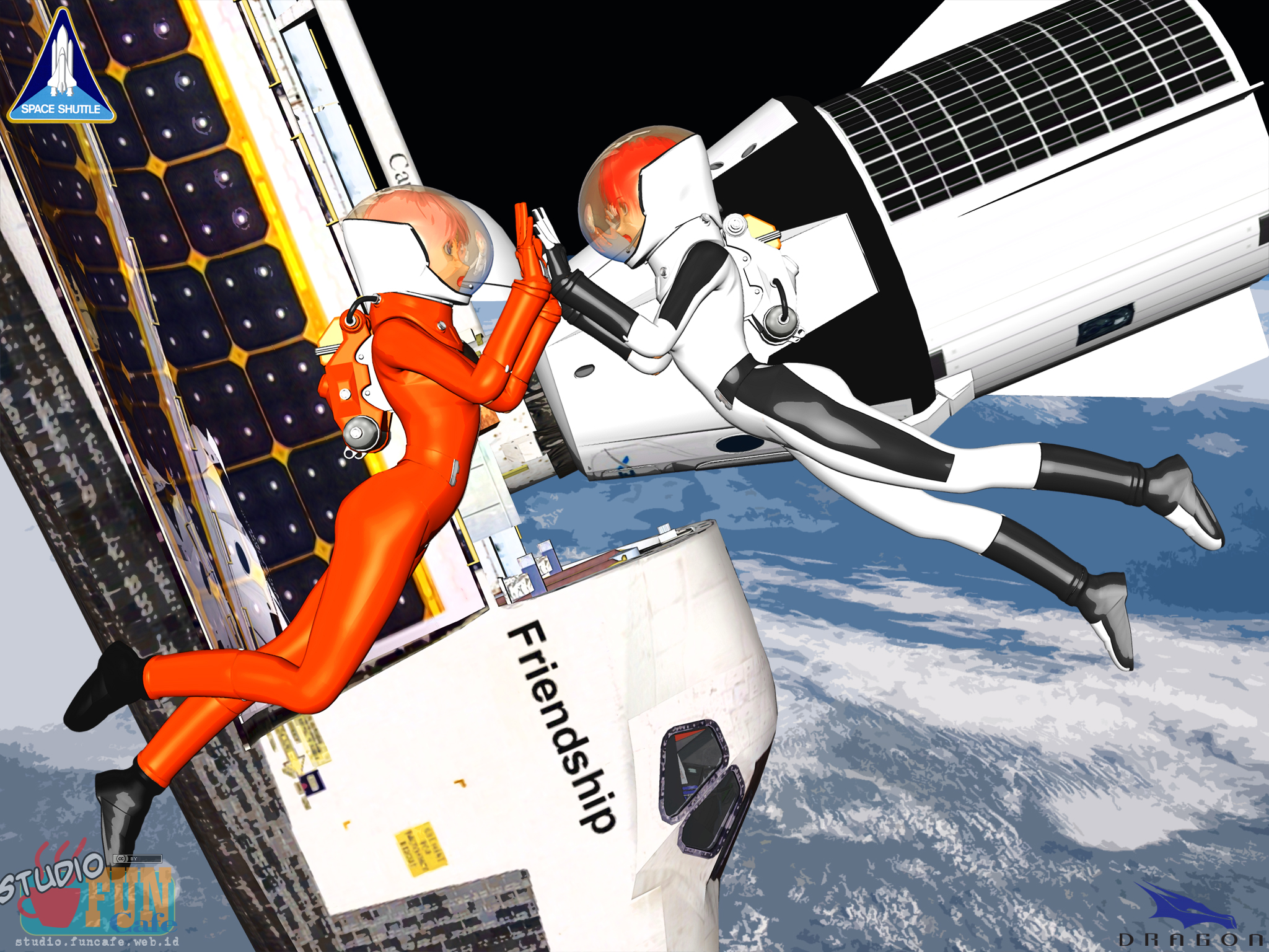 | Title: Zero Gravity Rendezvous Finished: February 04, 2021 The glorious spacecraft of yesterday meets the promising spacecraft of today. It is nice if this could happen. The orange scheme spacesuit was based on Shuttle launch suit theme, while the white spacesuit was based on Dragon launch suit theme. |