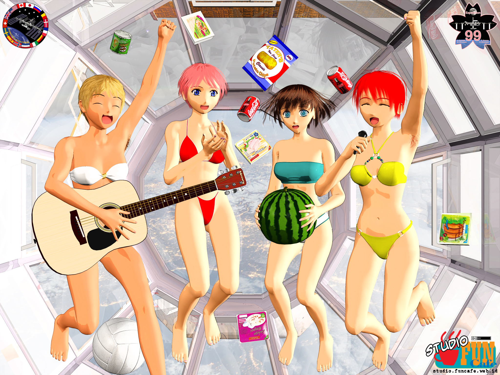 It's midsummer time. Since they are "technically stuck" in space, they are having a virtual beach party in the recreational module. Swimsuit, watermelon, snacks, and all the fun, the missing parts are just sandy beach and sea water.