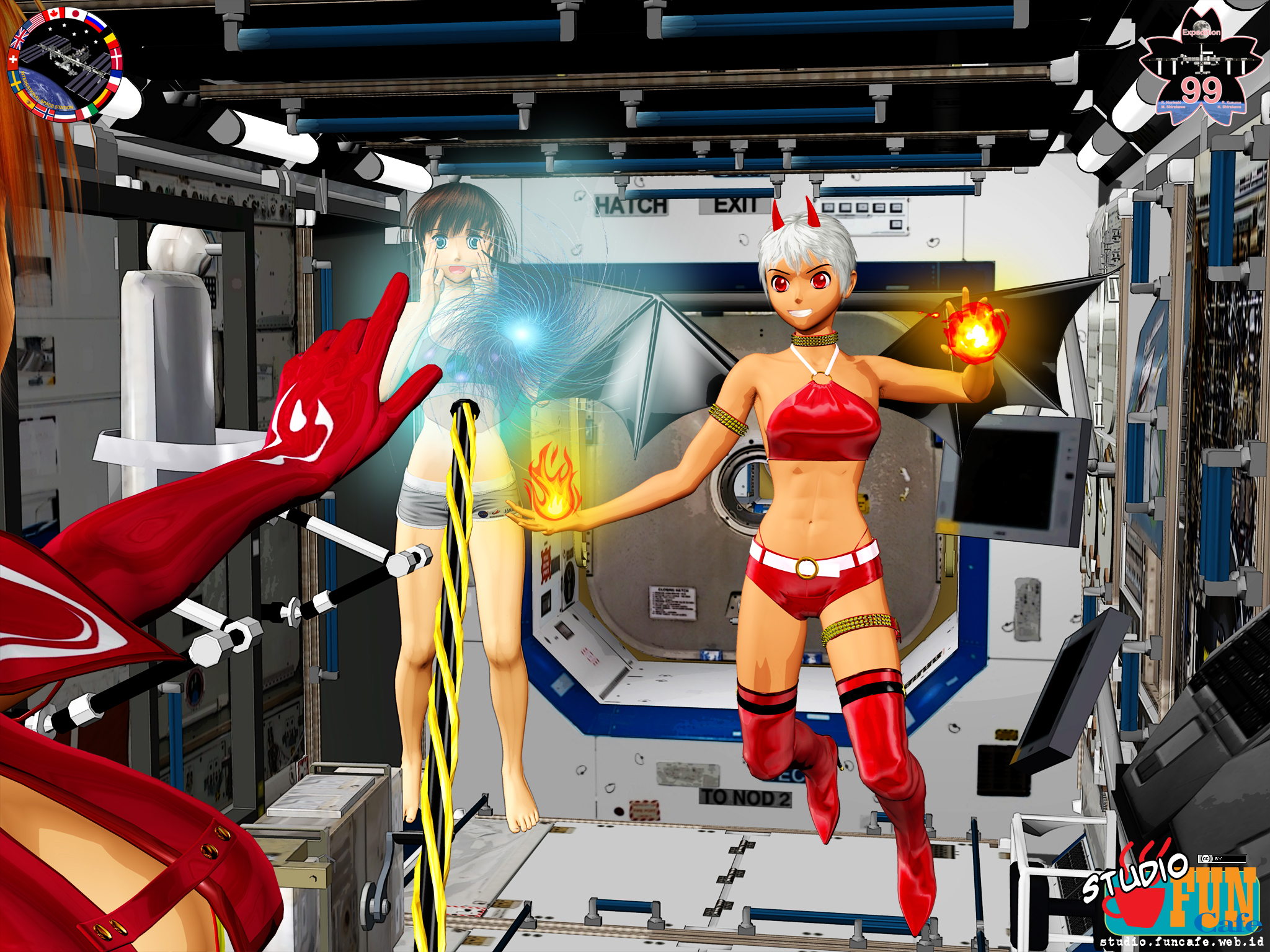 | Title: Halloween Showdown Finished: October 30, 2021 It's Halloween, and you're stuck thousands kilometers above the earth. What will you do? Off course, you'll make your own Halloween party! The girls are also having zero gravity Halloween party. They are cosplaying and having a mock battle between a devil and a witch. Off course this is just an acting, there is no way a magic battle could be performed inside a space station. In case of devil versus witch, which side are you? |