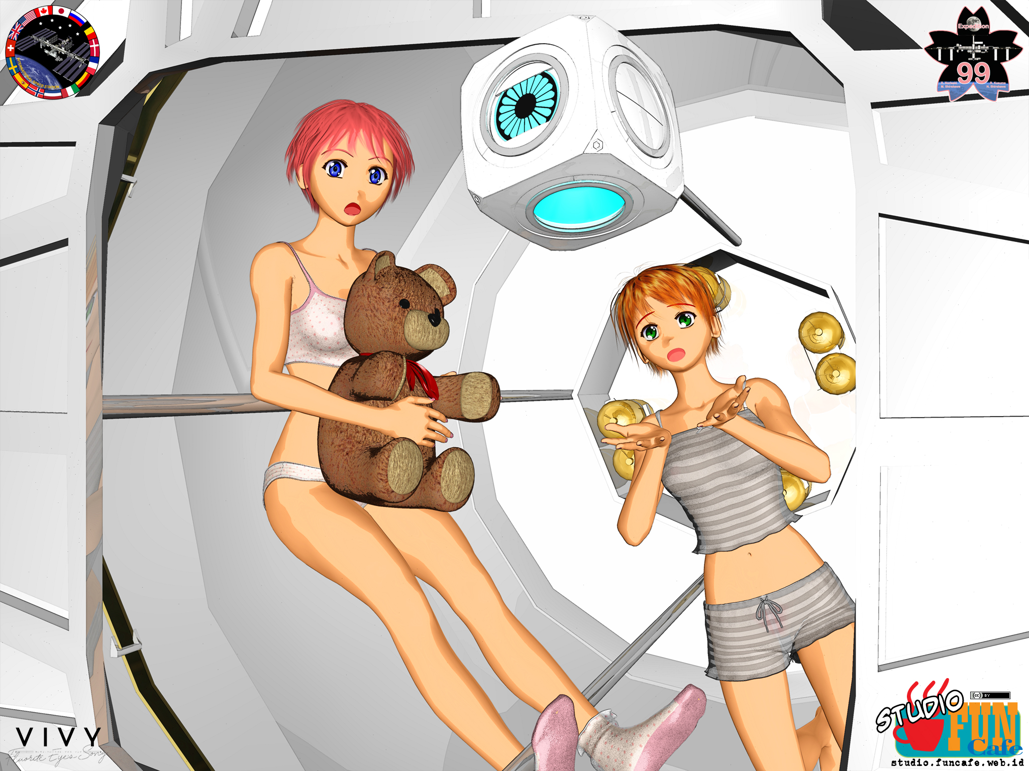 | Title: Close Encounter of The Third Kind with an AI Finished: November 03, 2021 A while ago, Noa has made contact with Matsumoto. Apparently, she hid him in her sleeping quarter. Now he has been found out and the joyful AI is surprising everybody by roaming freely inside the ISS. BTW, Noa's hair has been dyed for yesterday Halloween cosplay. |