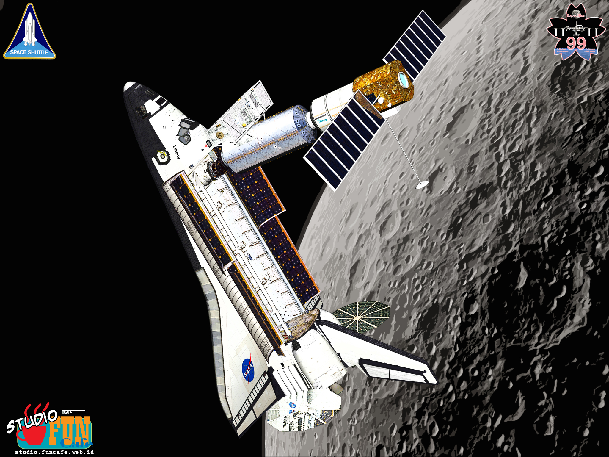 The assembly of the first stage of the (fictional) Lunar Orbital Platform has completed. The Neo-Shuttle Liberty was the first spacecraft ever docked with the station. Inside, the crew is celebrating the completion of the job. These two buddy will stay in the station for a while for testing the habitation module. Soon, they will depart back to ISS and leaving the station unmanned until the next mission.