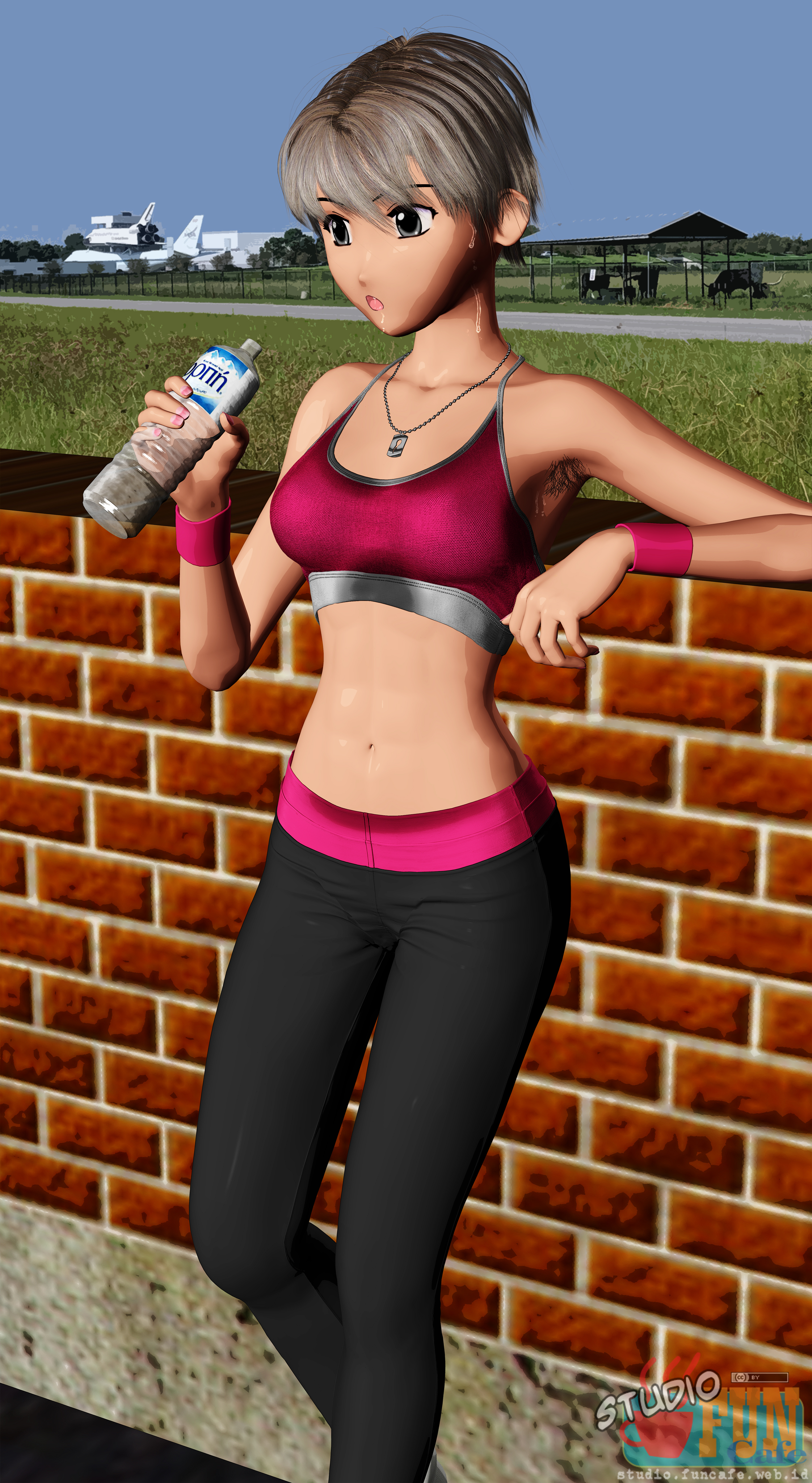 Drawing sweat is difficult, both on her body and on the clothes. That cause the inconsistent sweat location on these 3 pictures.